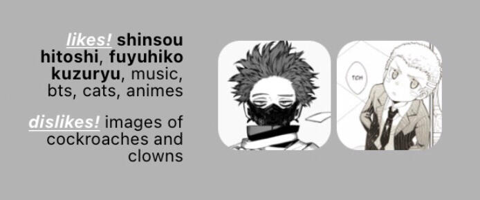 | im openly friendly and call ppl petnames, i talk abt mha and dr a lot, pls put a tw for fuyuhiko ships, i can't put a tw for junko enoshima. |